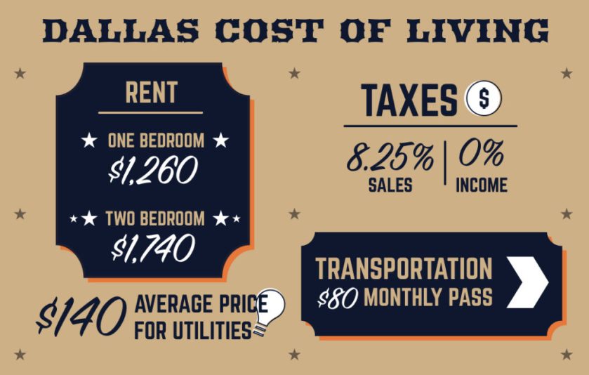 In addition to affordable lease costs, Dallas likewise boasts 0% earnings tax, making living here relatively budget friendly. Here’s what else you’ll need to know about the expense of living in Dallas.